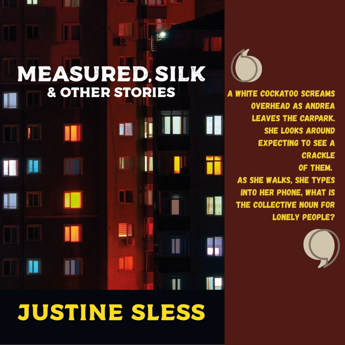 ‘Lyrical and spare, Sless‘s prose etches an emotional heft so deep that it almost feels like a sleight of hand. Infused with the inescapable weight of loneliness, these subtly interconnected stories reveal the momentary solace found in small rituals and everyday kindnesses.’ – Melissa Manning, author of Smokehouse, 2022 Victorian Premier’s Literary Award for Fiction